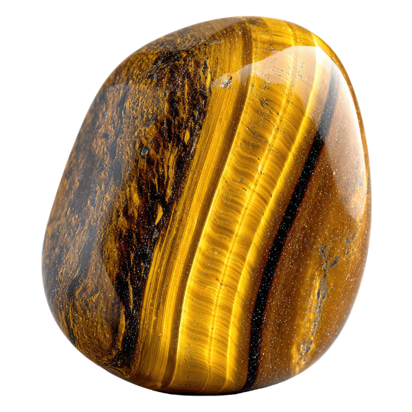 El ojo de tigre es una piedra de tonos dorados, marrones y miel con un brillo sedoso característico.